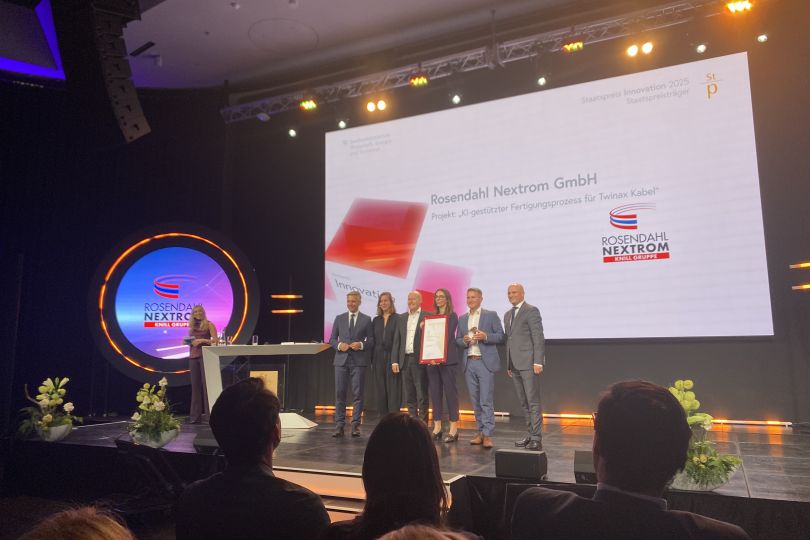 Die Rosendahl Nextrom GmbH erhält den diesjährigen Staatspreis Innovation für das Projekt „KI-gestützter Fertigungsprozess für Twinax Kabel“.